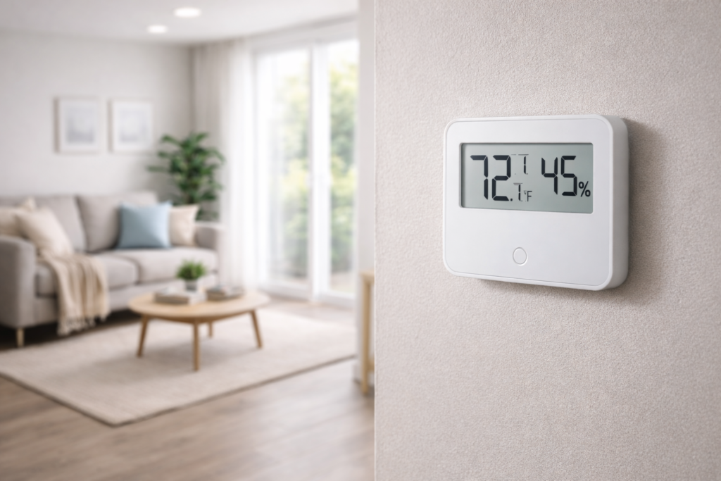 The ideal indoor humidity level for most homes is between 30% and 50% year-round. This range helps prevent condensation, reduce mold risk, and maintain comfort without creating overly dry air conditions.