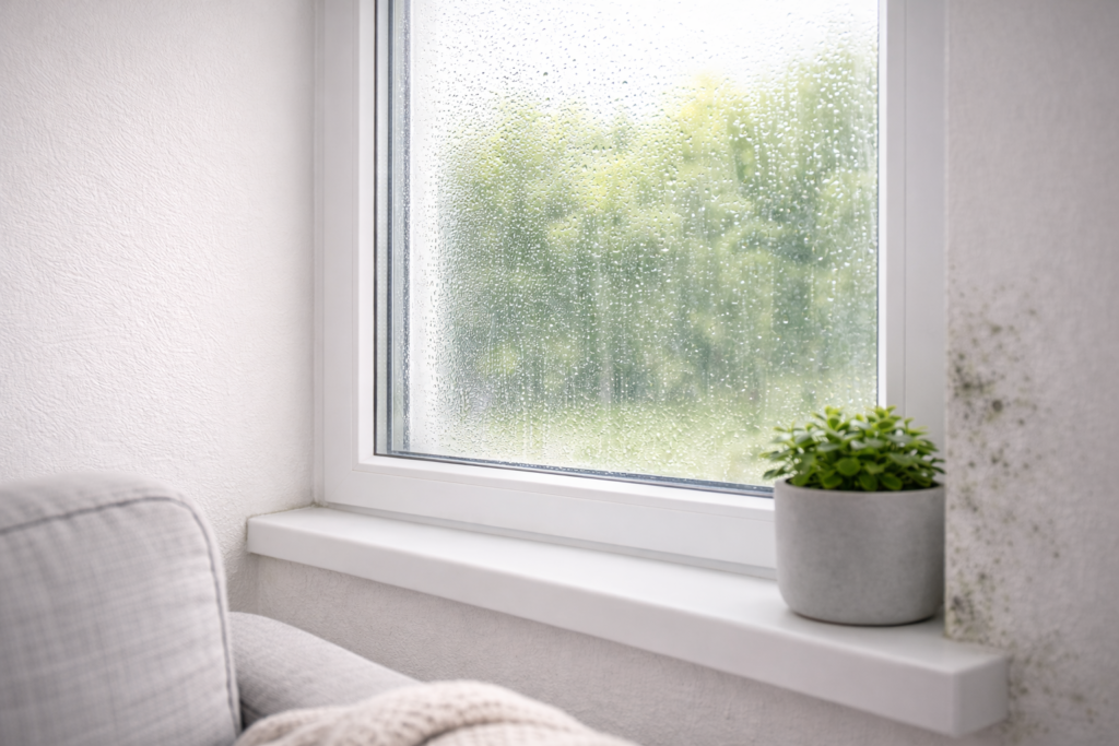 When humidity rises above 60%, moisture problems can begin to appear. You may notice condensation on windows, musty odors, or damp areas in basements and bathrooms. On the other hand, humidity levels below 30% can cause dry air discomfort, static electricity, and irritation in colder months.